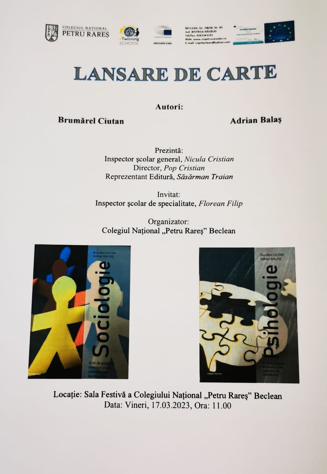 16/03/2023 Lansare de carte, profesor Balaș Adrian - Colegiul Național ”Petru Rareș”