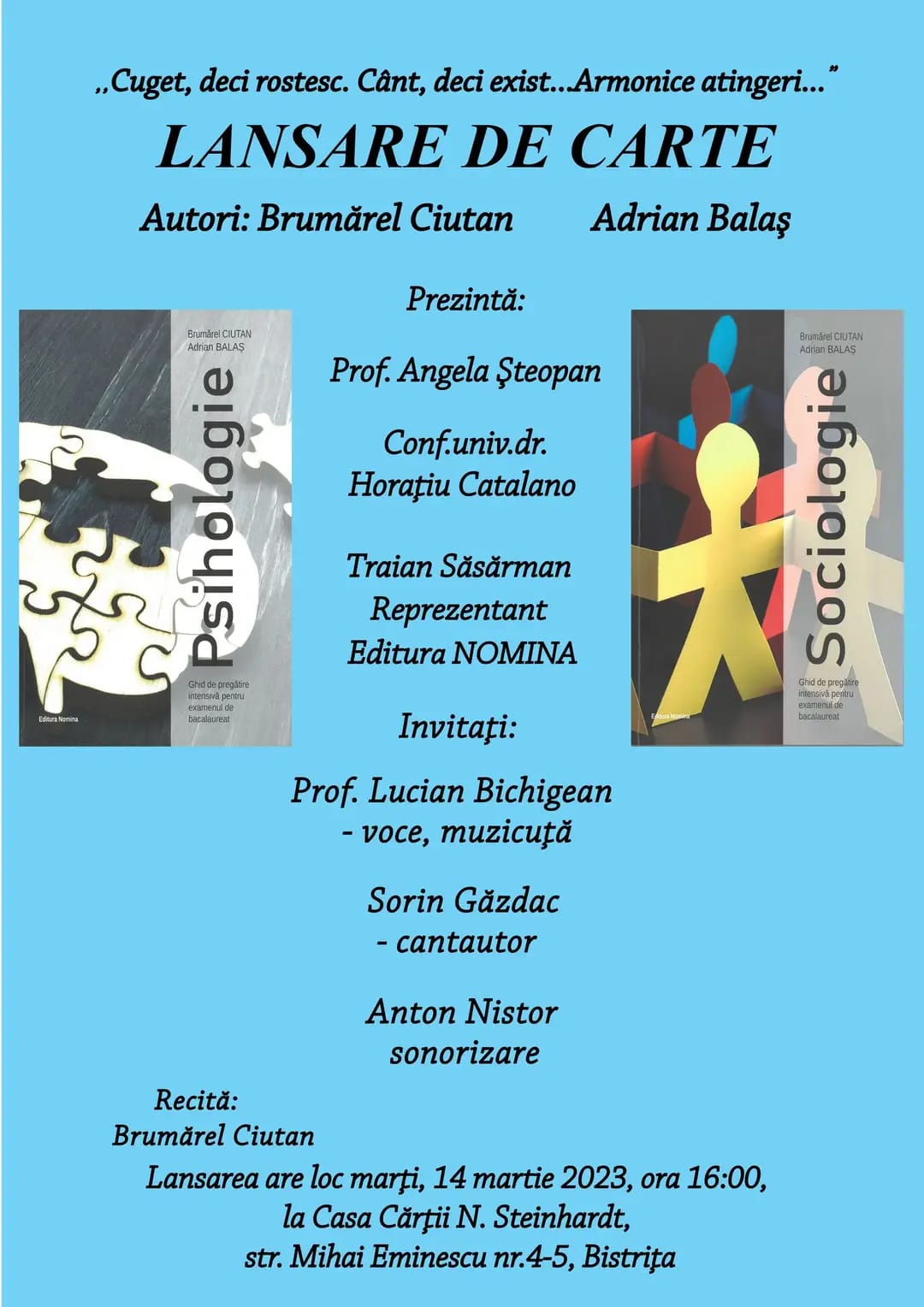14/03/2023 Lansare de carte, profesor Adrian Balaș.